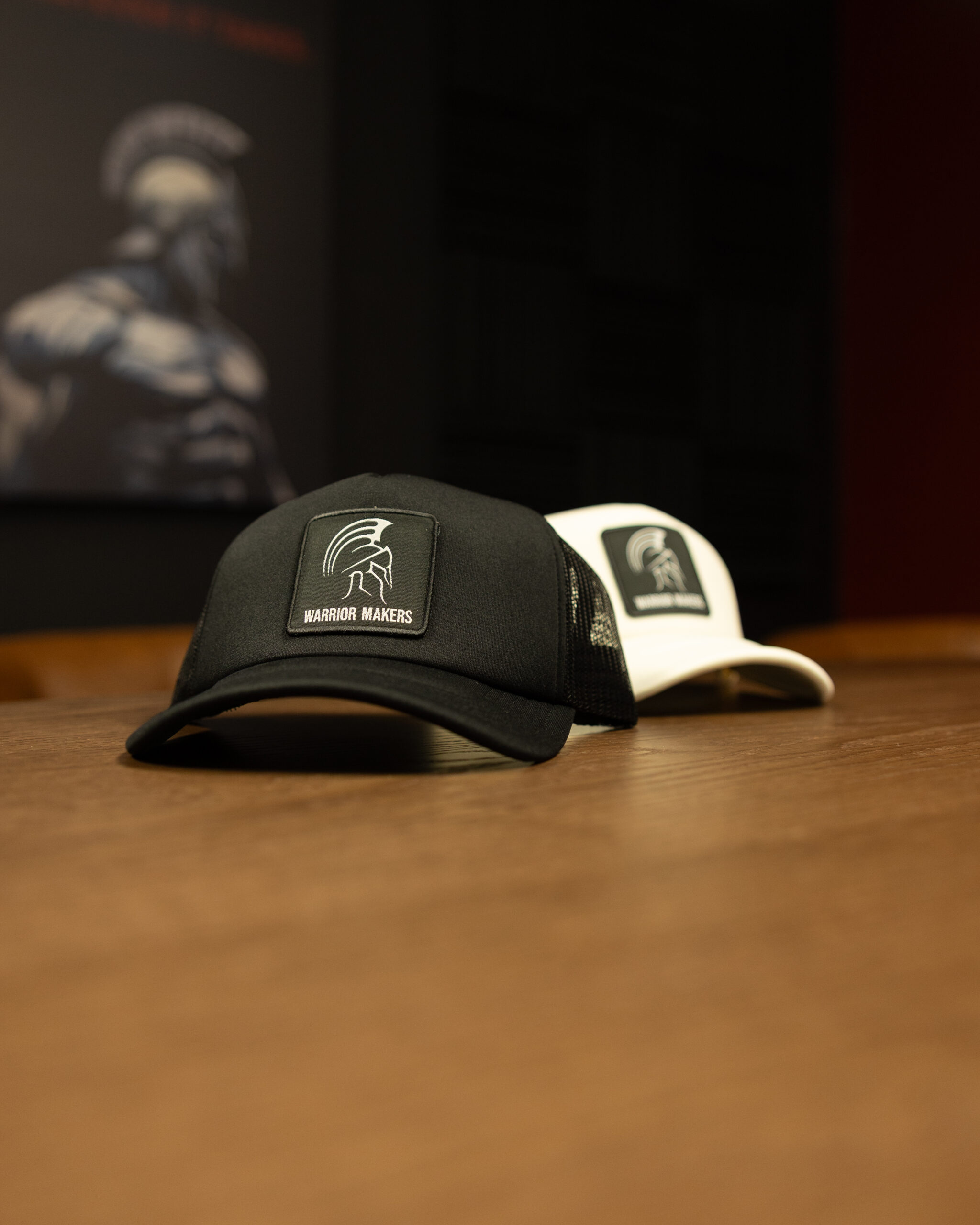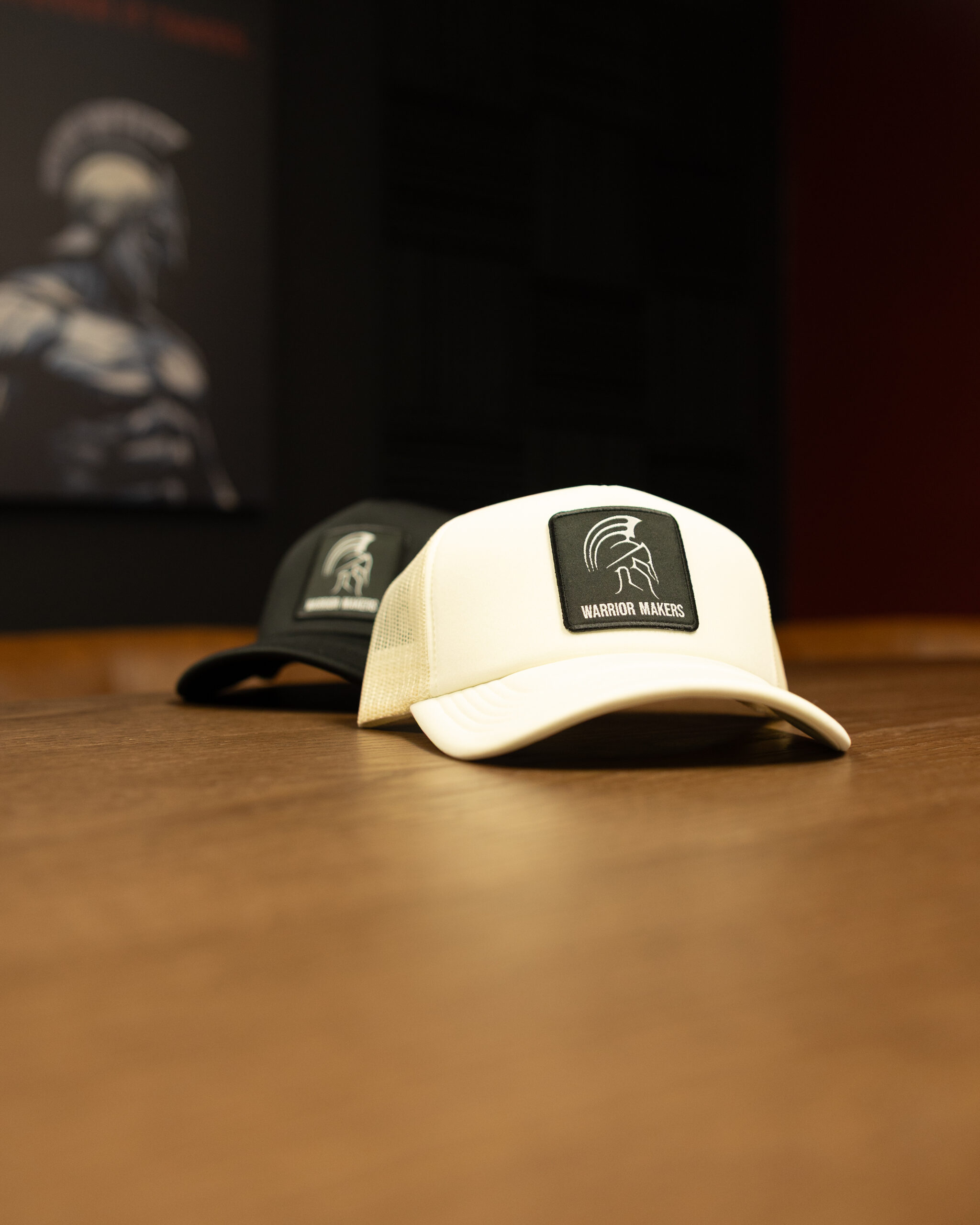 Clean, classic, and built for everyday wear — the Warrior Makers Foam Trucker Hat delivers a timeless look with purpose behind it. Featuring a structured foam front, breathable mesh back, and our signature Warrior Makers logo stitched front and center, this hat is designed for comfort and durability whether you’re in the gym, on the road, or off the clock. Available in Black and Cream, with an adjustable snapback for a one-size-fits-all fit, this is a go-to staple that represents strength, discipline, and the warrior mindset.