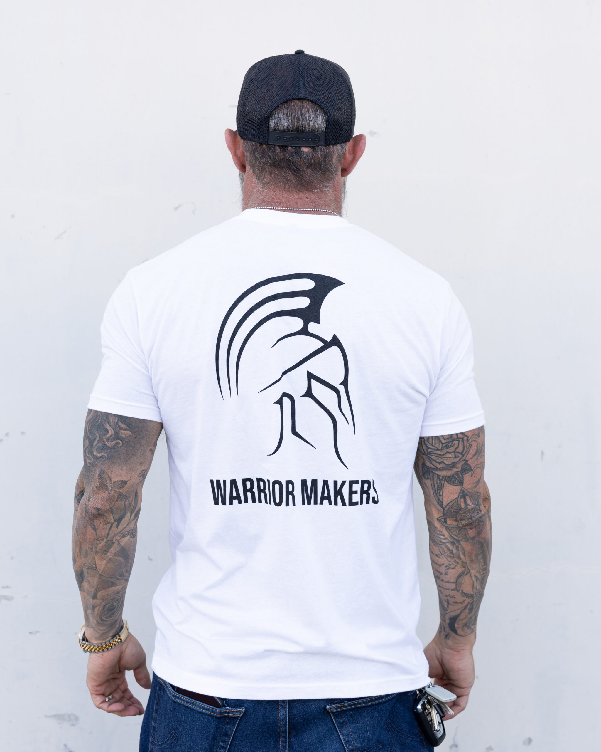 The Warrior Makers White T-Shirt is crafted from a high-quality cotton/poly blend for an ultra-soft feel with an athletic, flattering drape. Made by Next Level, this tee fits and hangs exceptionally well, offering comfort without sacrificing style. Featuring the Warrior Makers logo on the front and back, it’s available in M, L, XL, XXL and built to be your go-to everyday shirt.